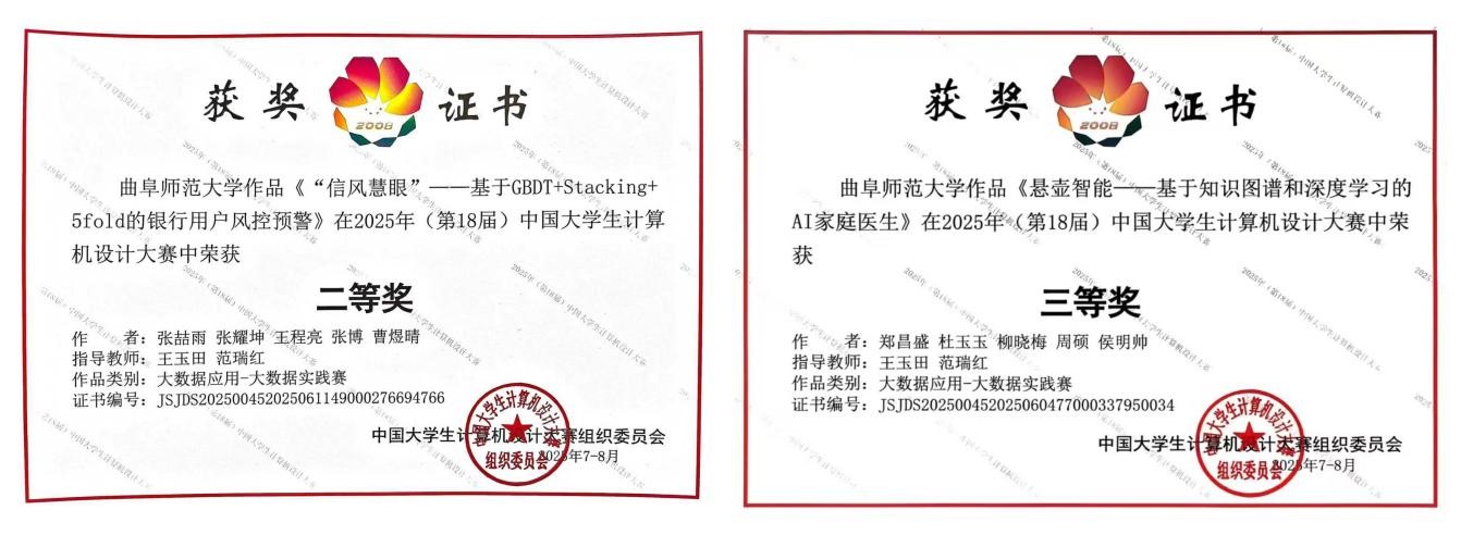 第18届中国大学生计算机设计大赛中,指导的两项作品分别荣获国家级二等奖、三等奖。