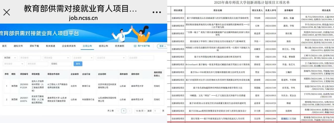 主持两项教育部第四期供需对接育人项目(左图)、创业计划项目获国家级立项(右图)