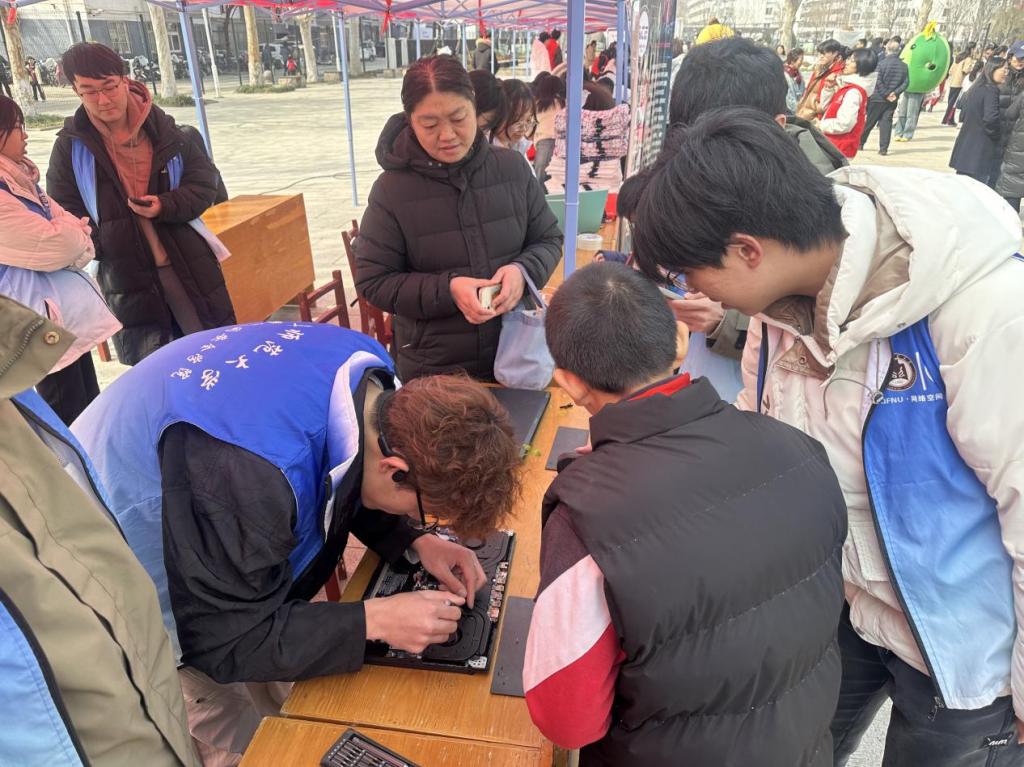 志愿者为大家带来了一站式计算机维修与调试服务,涵盖系统优化、数据恢复、硬件检修等多个方面,现场为师生排查解决各类电子设备故障,并依托扎实的专业技能予以解决,切实保障校园数字生活有序运行。