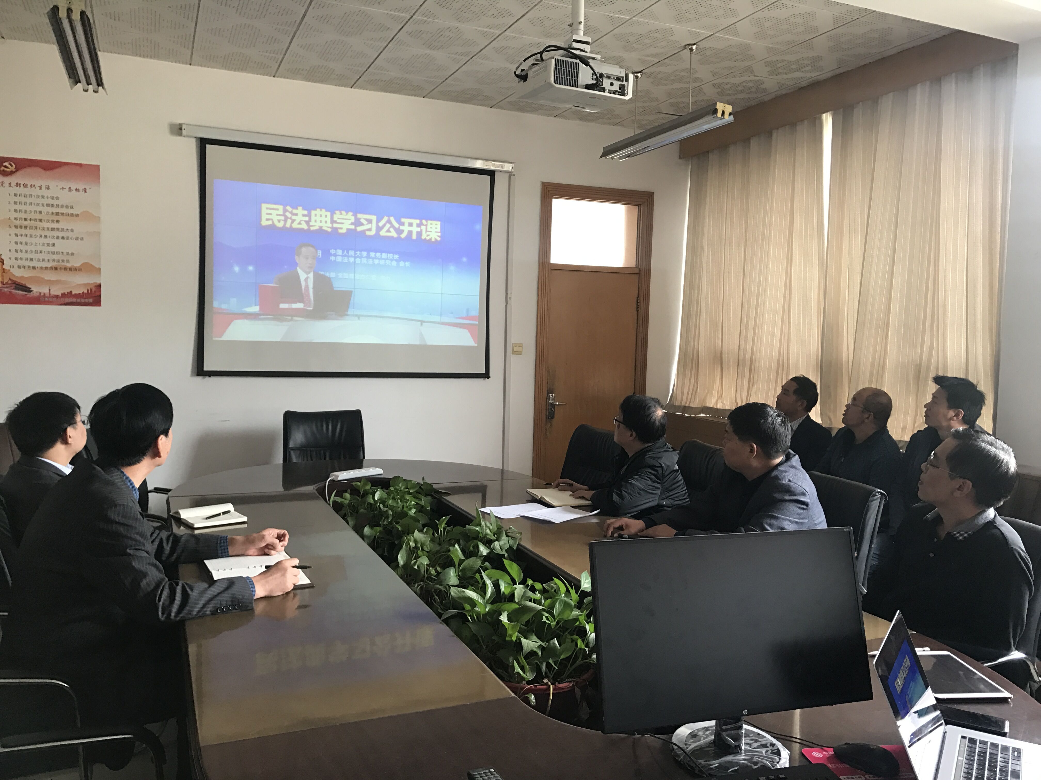 党委理论学习中心组在会议室集中学习观看《民法典》公开课。bet365