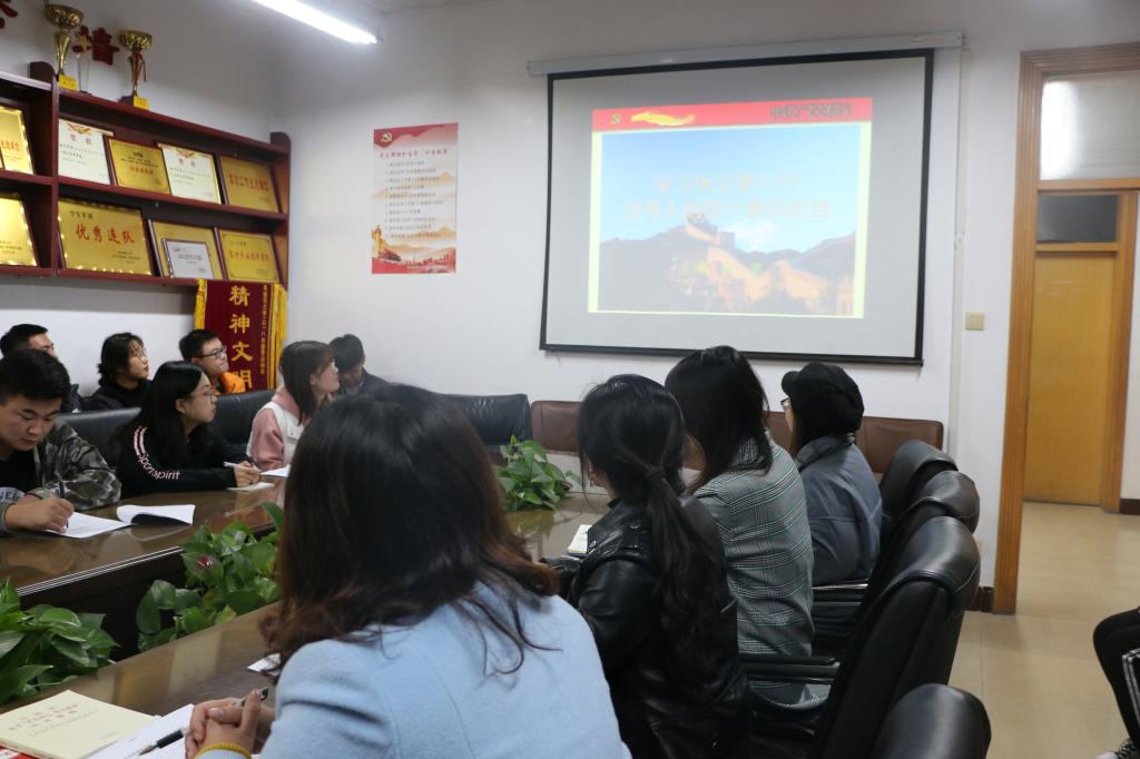 田凯书记带领与会同志学习第一代领导人的“四个意识”担当有关内容。根据第一代领导人的亲身事迹及中国共产党的发展历程,深入分析了第一代领导人的“四个意识”及形成四个意识的原因。田书记强调:党员干部应深刻了解“四个意识”,提升党性修养,要向老一辈学习,要有清醒的认识、坚定的立场、深厚的修养。他还指出学生党员要增强学习意识,提高素质能力,要把学习当做一种生活态度、终身学习。其次,要坚定理想信念,强化服务意识,树立起为同学服务、为人民服务的宗旨观念,充分发挥党员的先锋模范作用。