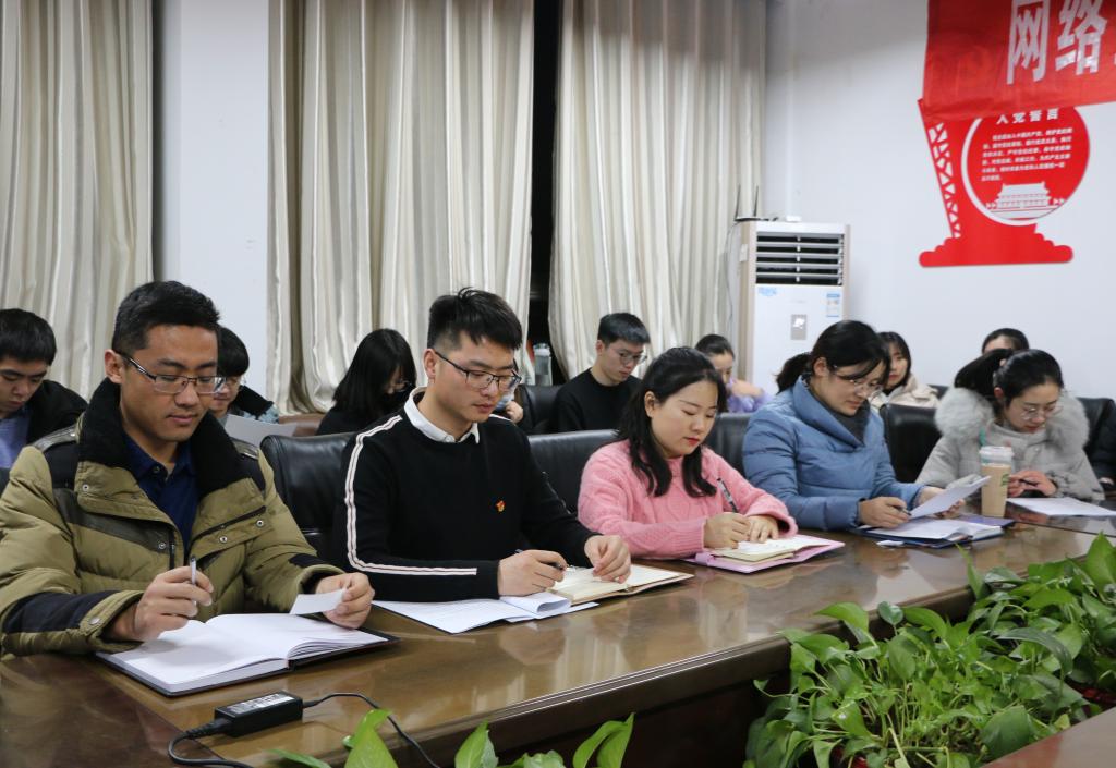 于410会议室召开党支部星级评定及年度考核评审会议,会议由本科生党支部书记田凯主持,团委书记范瑞红、辅导员洪亚玲、武玉龙、丁允念及全体党员参加。