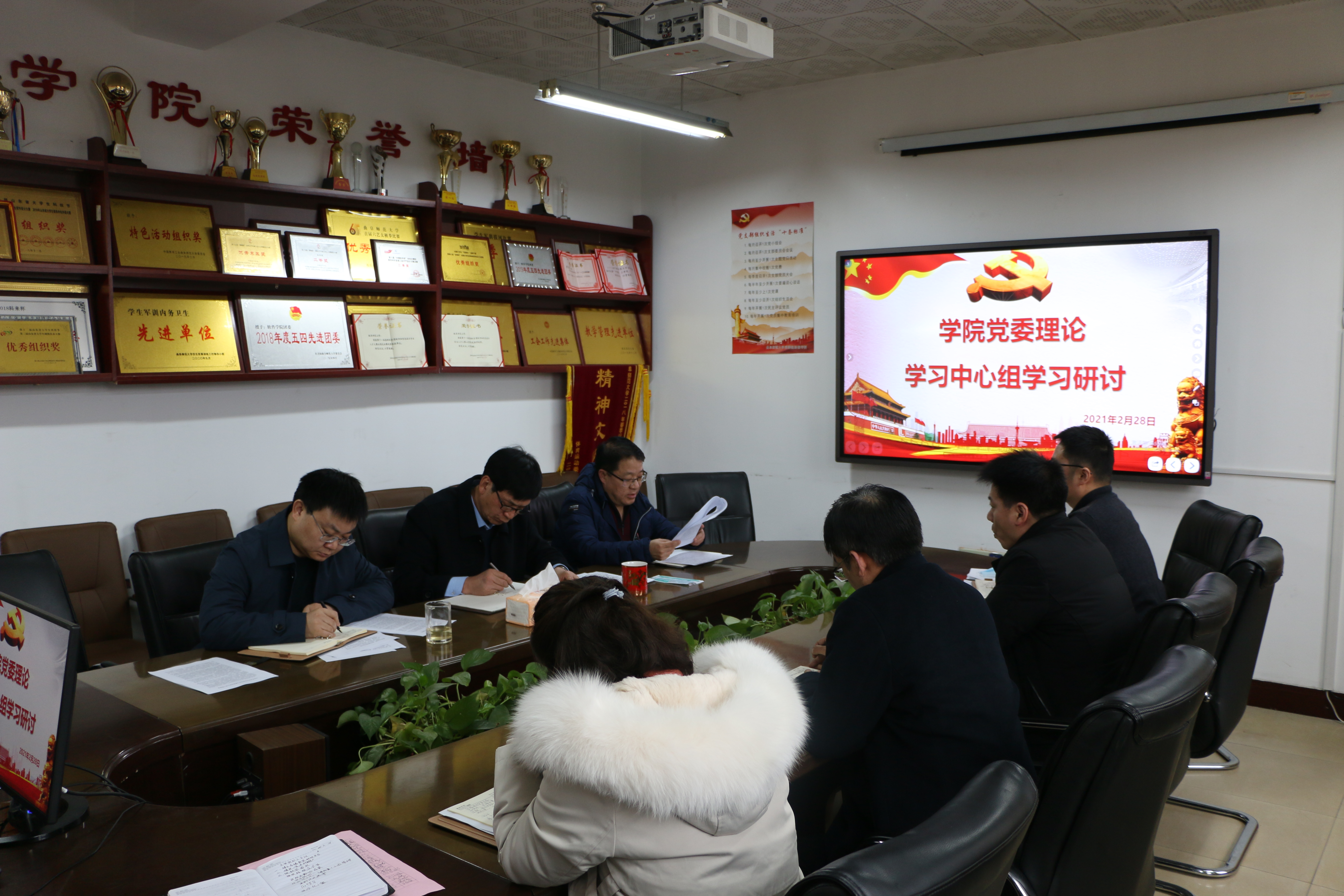 党委书记田云飞主持,中心组成员田云飞、王茂励、田 凯、倪建成、鲁大营、马旭、齐邦强、范瑞红参加了学习。