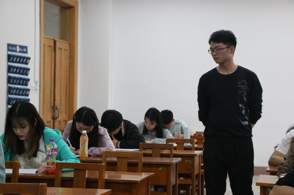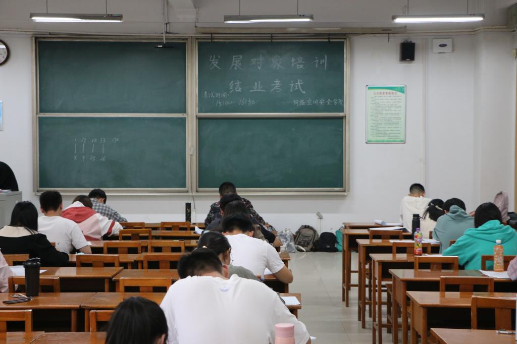 于5月9日,在综合楼203室成功举办党员发展对象培训结业考试,由辅导员丁允念监督考试。