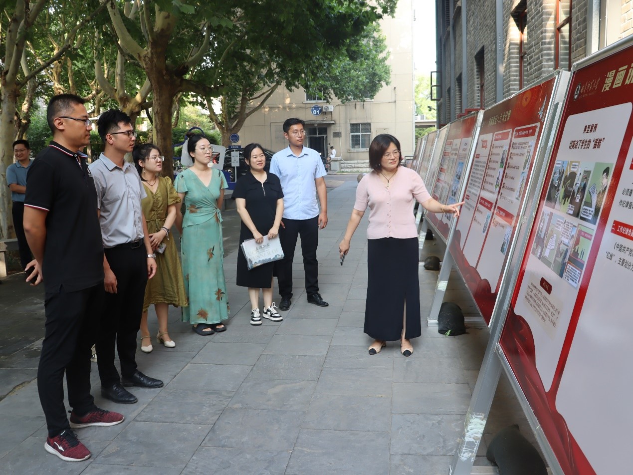辅导员一同参观党纪学习教育专题展板,仔细研读学习展板内容。范瑞红强调,辅导员们要带头学纪、知纪、明纪、守纪,在学习贯彻《中国共产党纪律处分条例》上下功夫见成效,进一步明确日常言行的衡量标尺,用党规党纪校正思想和行动,做“为党育人为国育才”排头兵。通过“漫画说纪”系列解读和经典案例分析,辅导员们更加深刻地认识到党纪是维护党的团结统一、是保持党的先进性和纯洁性的重要保障,纷纷表示要把本次党纪学习教育与实际工作结合起来,将所学知识运用到日常学生工作中,积极引导学生树立正确的价值观和纪律意识,全心全意做好学生工作。
