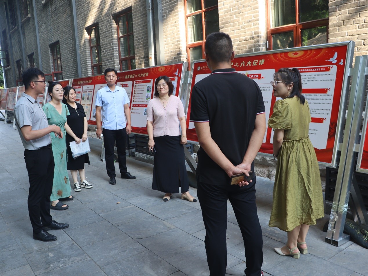 活动中,范瑞红带领党员们深入学习了《中国共产党纪律处分条例》,了解了党的纪律建设的历史沿革,重温纪律建设百年来的风雨征程,让党员们认识到遵守党的纪律对维护党的集中统一、保护党的战斗力有着重要的意义,她要求,广大党员干部要严格遵守党的纪律,充分发挥党员的先锋模范作用。随后,武玉龙解读了“漫画说纪之六大纪律”展板的内容,要求全体党员应做到忠诚、干净、有担当,始终确保自身行为处在党的纪律和规矩的框架内,牢记党的初心和使命,不断加强党性修养,时刻保持清正廉洁。