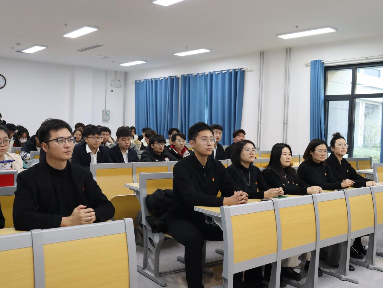 各本科生党支部于格物楼B107开展国防教育主题党日活动,集中观看国防教育主题电影《一生交给党》。党委副书记范瑞红、本科生第一党支部书记武玉龙、本科生第二党支部书记丁允念、本科生第三党支部书记于媚媛、辅导员相青、洪亚玲、赵兴卯以及本科生党员参加本次主题党日活动。