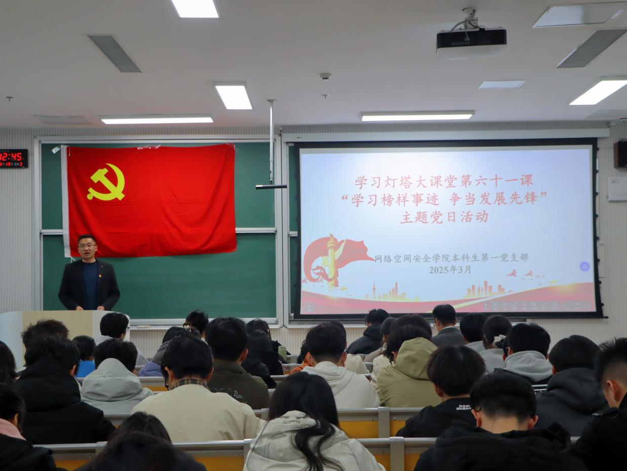 学习灯塔大课堂第六十一课“学习榜样事迹,争当发展先锋”主题党日活动于格物楼B106召开。党委副书记范瑞红,本科生第一、二、三党支部书记武玉龙、丁允念、于媚媛,辅导员赵兴卯、相青以及各党支部党员参会,武玉龙主持会议。