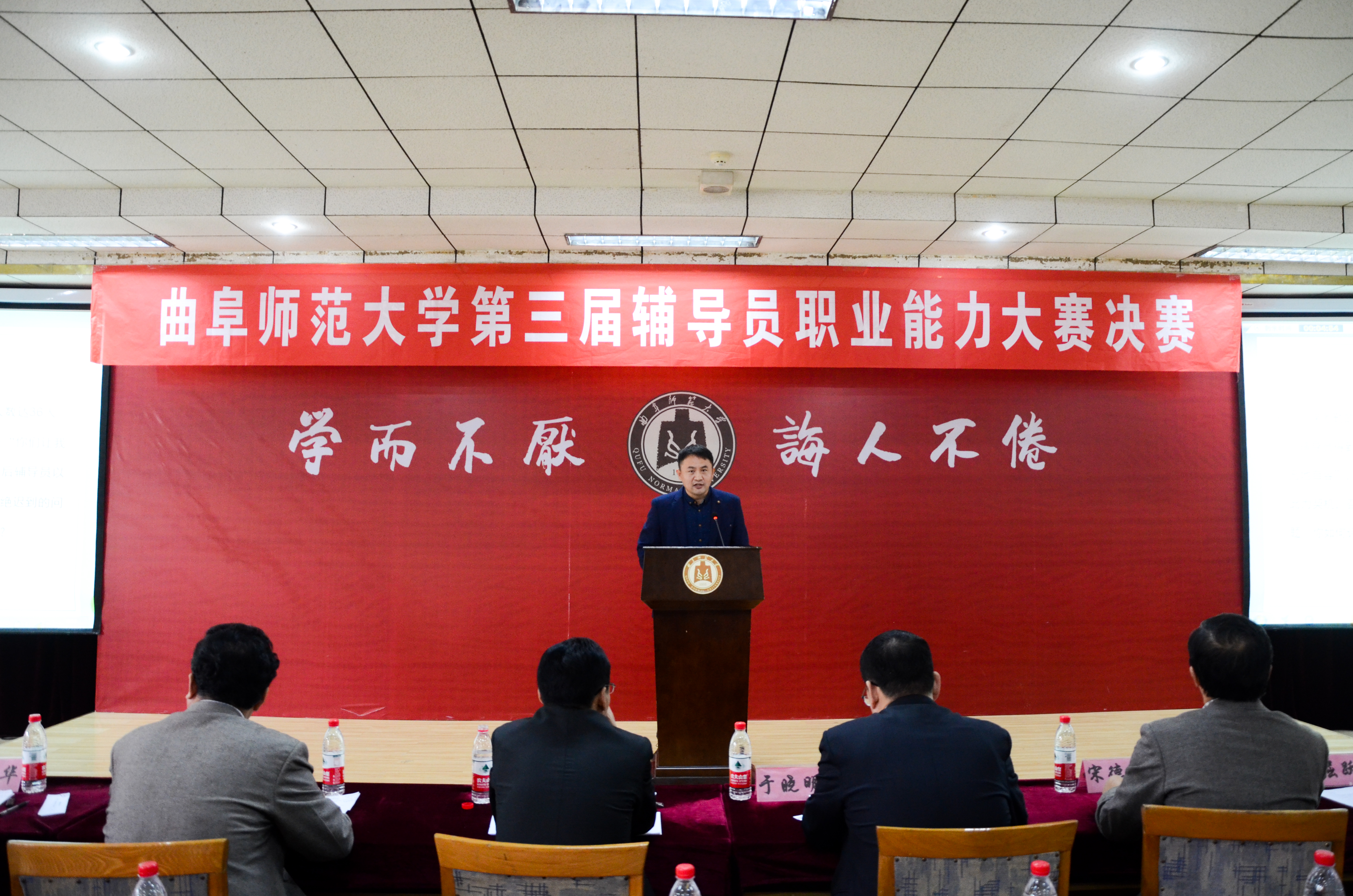 为进一步加强我校辅导员队伍专业化、职业化建设,提升大学生思想政治教育的科学化水平,我校特举办第三届辅导员职业能力大赛,10月17日,大赛决赛成功举行,山东省德育中心主任姚昌、山东师范大学学生工作处处长于晓明、我校学生工作处处长杨永明、副处长王志华出席此次大赛并担任评委。