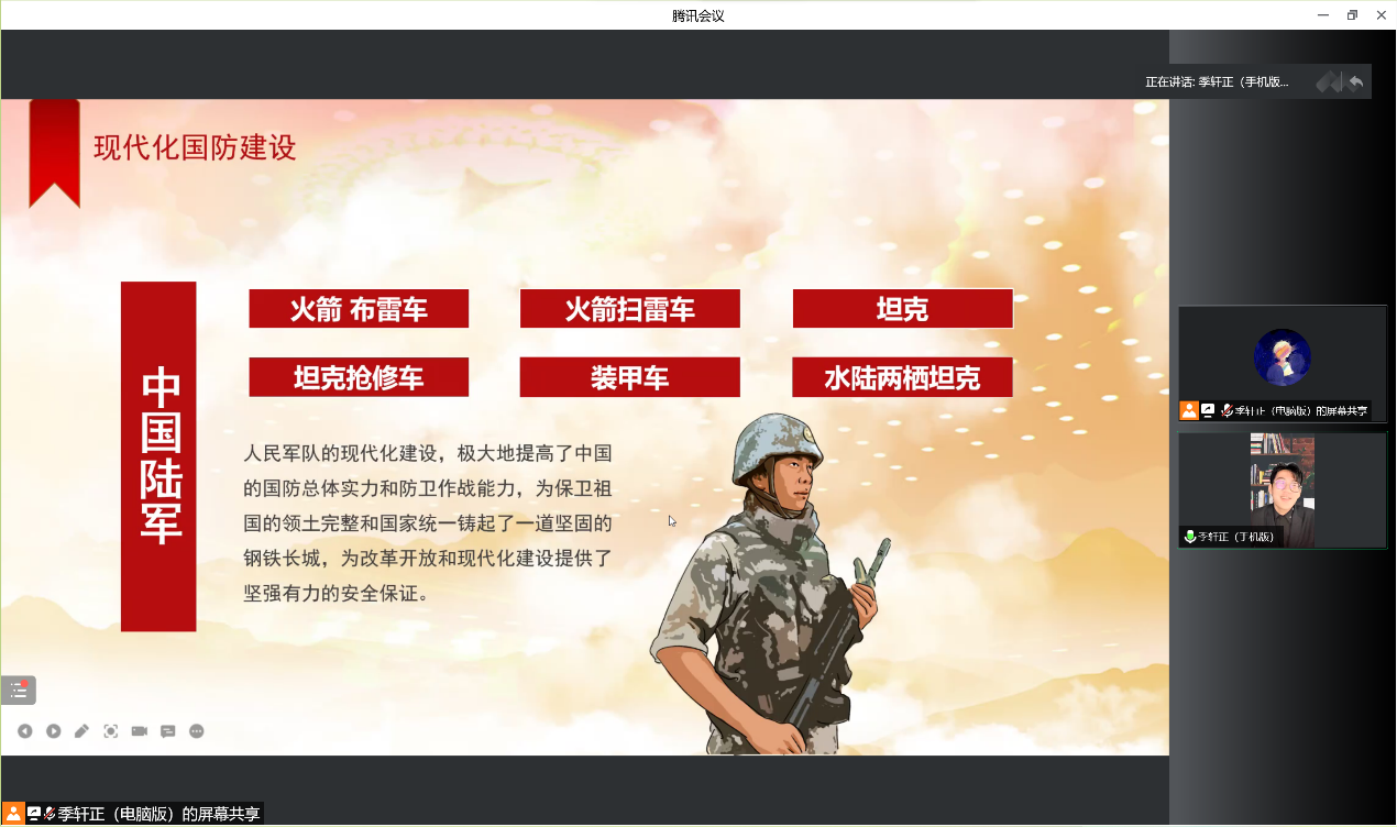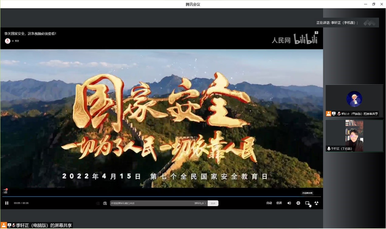 此次线上会议的召开,让同学们初步认识到当今国际形势,增强了对国家安全的重视,牢记历史,以奋发昂扬的姿态满怀步入大学的学习生活,把满腔爱国热情化作振兴中华的实际行动,对于提高学生的综合素质、深植学生爱国主义精神、增强我国国防精神力量有着重要意义。