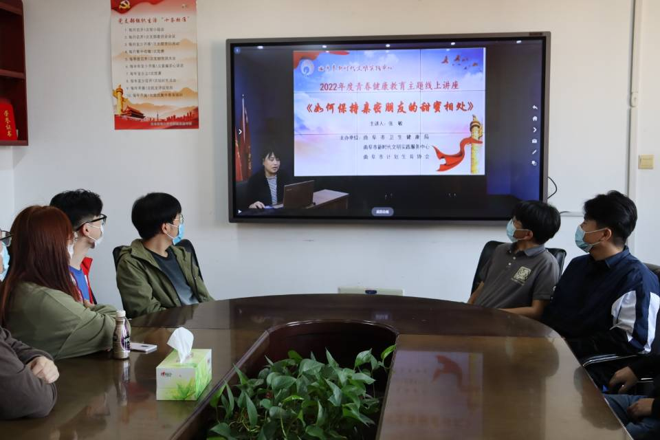 410会议室观看“2022年度青春健康教育”主题线上直播。本次直播由曲阜市卫健局、市计生协举办,济宁市计生协青春健康主持人、曲阜市中医院心理门诊主任张敏担任本次直播的主讲人。