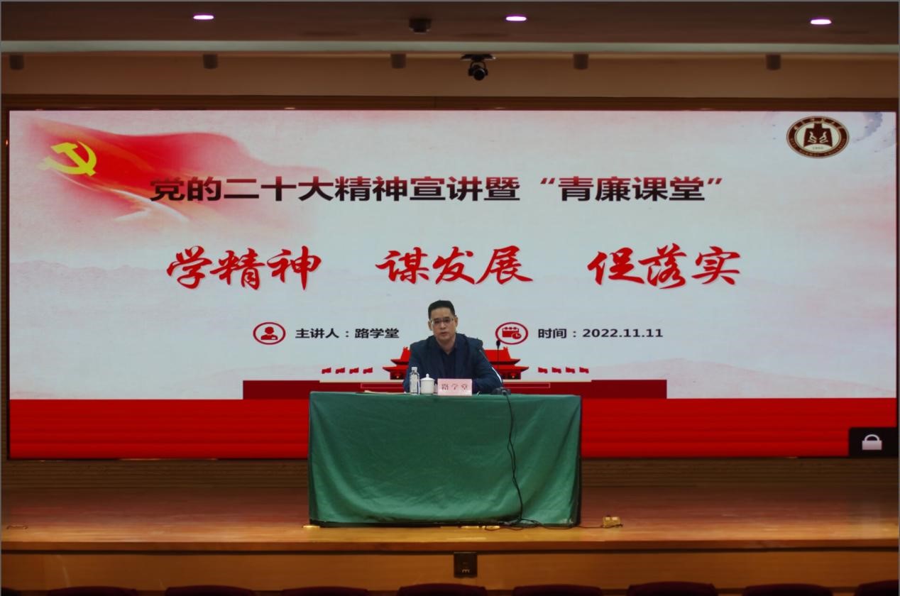 院讯(通讯员:武玉龙 郑加强 摄影:崔城豪)11月11日上午,学校纪委在孔子会堂举办学习贯彻党的二十大精神宣讲报告会暨“青廉课堂”第二课。学校党委常委、纪委书记、省监委驻校监察专员路学堂作宣讲报告,纪委副书记苏斌主持报告会。bet365