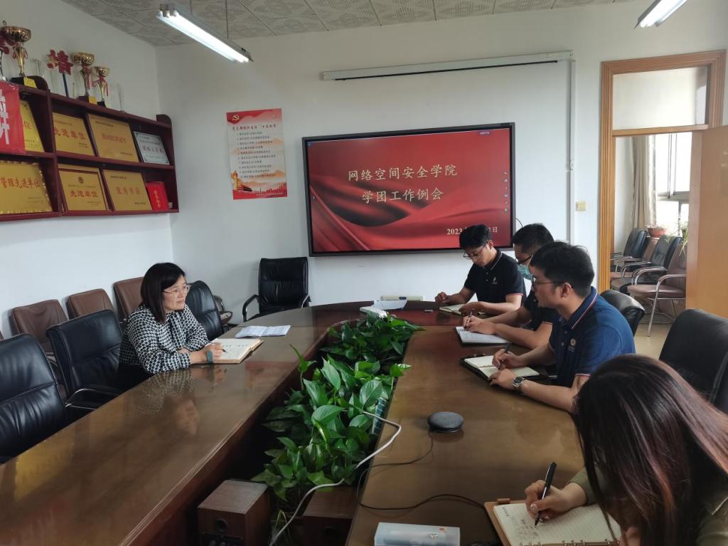会议伊始,范瑞红传达了学校副书记会议精神,对近期工作进行了安排部署:一要积极发动学生参加“百佳宿舍”评选活动,以宿舍文化建设为抓手,打造良好的宿舍环境,建设优良宿舍风气,增强学生的团结力、凝聚力和创造力;二要规范党支部建设,积极开展学习贯彻习近平新时代中国特色社会主义思想主题教育;三要加强对学生会的管理,优化学生会管理制度,同时做好学生干部的选拔和培养,为召开第六次学生代表大会做好充分准备;四毕业生辅导员要做到多措并举稳步推进就业工作,为学生进行多方面指导与帮助,努力实现更多学生高质量就业。