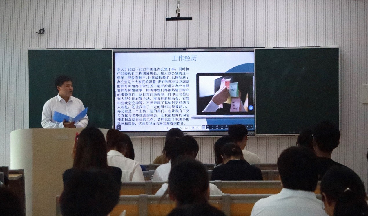 团委学生会副部换届竞选工作于格物楼B101、B103召开,辅导员赵兴卯、学生会主席团以及团委学生会各部门部长参加并担任评委。