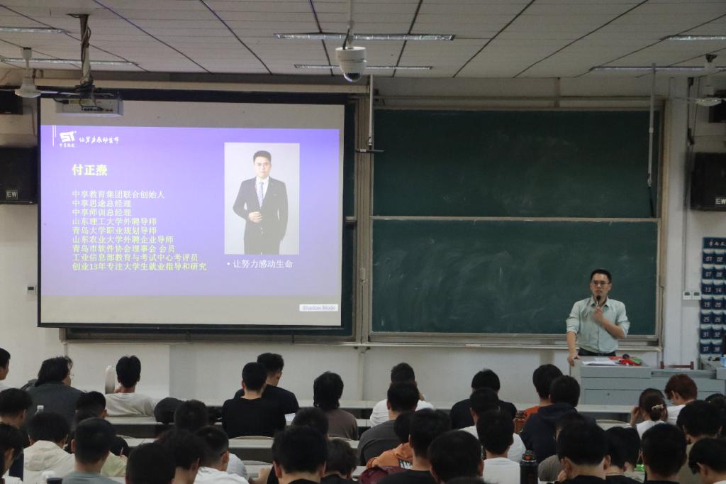 邀请具有丰富应届生就业指导经验,企业创始人付正焘老师为22级学生进行讲座。22级辅导员相青和22级学生参加讲座。