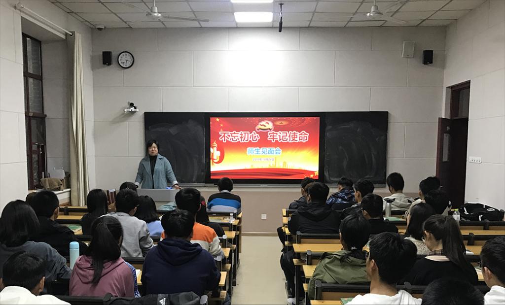 后勤管理处副处长张石磊联系19级软件工程4班。张副处长对同学们进行了深刻的思想教育,从七个方面向同学们讲解了大学生的未来规划。张副处长对班风建设和班级管理等方面提出了合理的意见和建议,并就就业、考研、生活进行了详细的讲解。她希望青年学生树立远大理想,热爱伟大祖国,担当时代责任,勇于砥砺奋斗。
