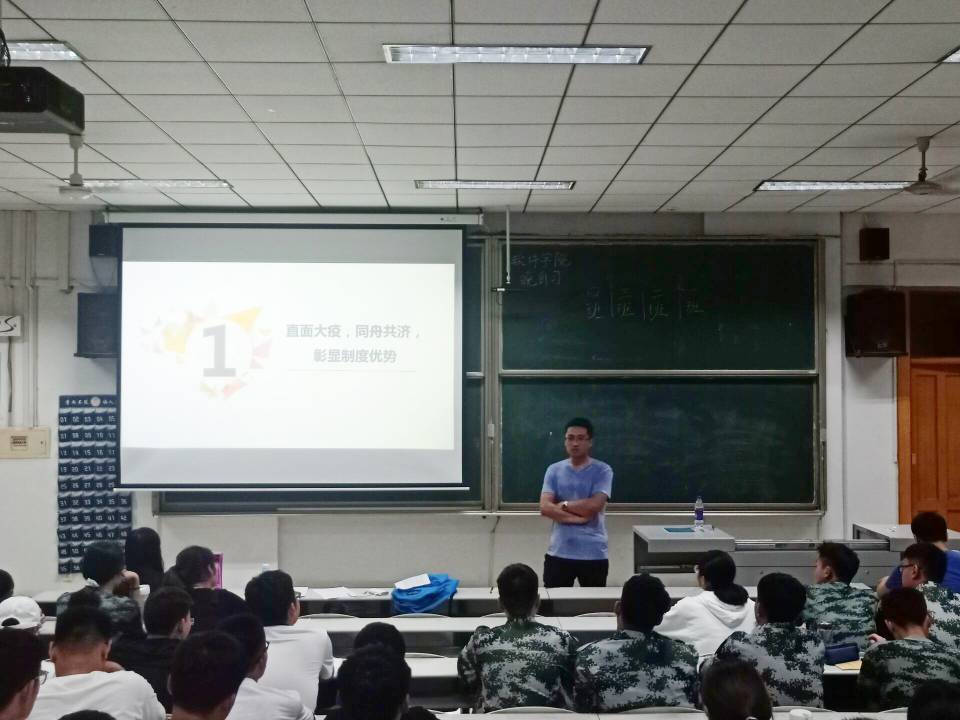 在这个别样的课堂上,武老师首先对军训提出了要求,他强调到军训不仅是迈入大学的第一步,更是锻炼自己的绝佳时机,希望同学们不要放弃任何一次展现自己才华的机会,当然,保证展现自我才华的前提是要有一个良好的身体状况,如若在军训期间有任何不适及时报告,进行身体的调整,以最好的状态投入到队伍中。在这个特殊的时期,同学们要严格执行学校的规章制度,每天填报智慧曲园,上报健康状况,出现发烧、呕吐等不良状况及时上报,并到医院就诊。刚步入大学的软件学子们懵懂无知,对曲园充满好奇,心中疑惑不解,他们向武老师提出心中所疑,武老师对同学们的问题进行了详细的解答,精彩的回答赢得了同学们的阵阵掌声,开学第一课也就此拉下帷幕。
