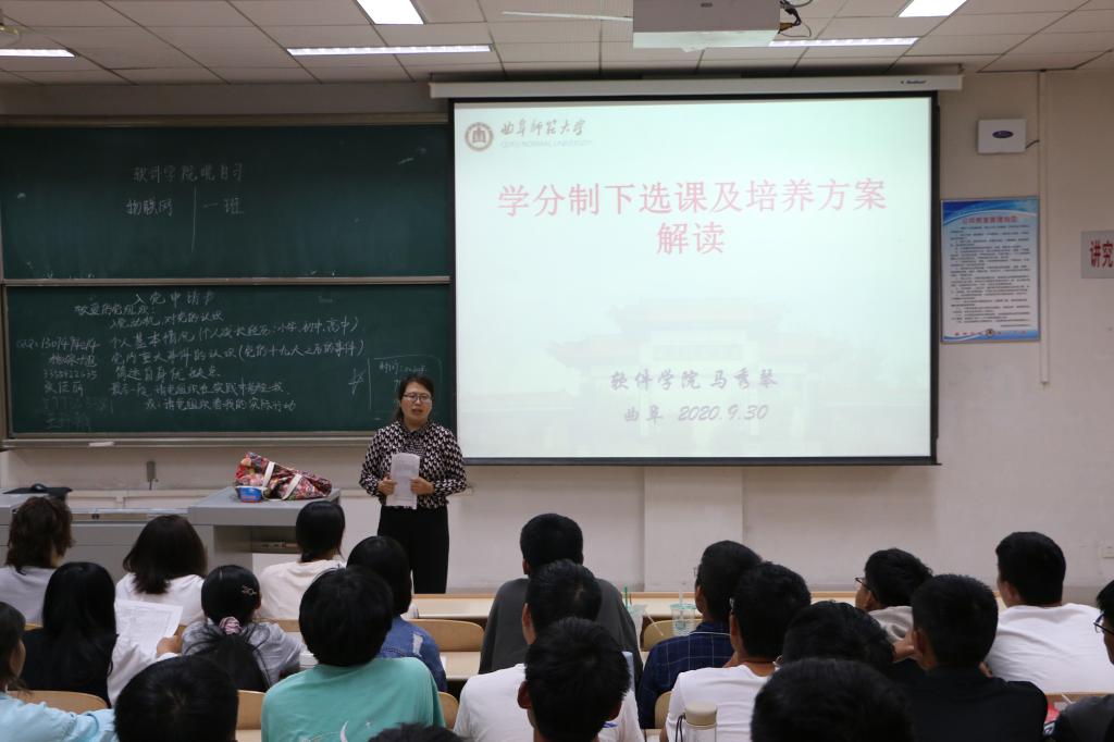 辅导员武玉龙主持,马秀琴老师主讲,20级全体新生参加。