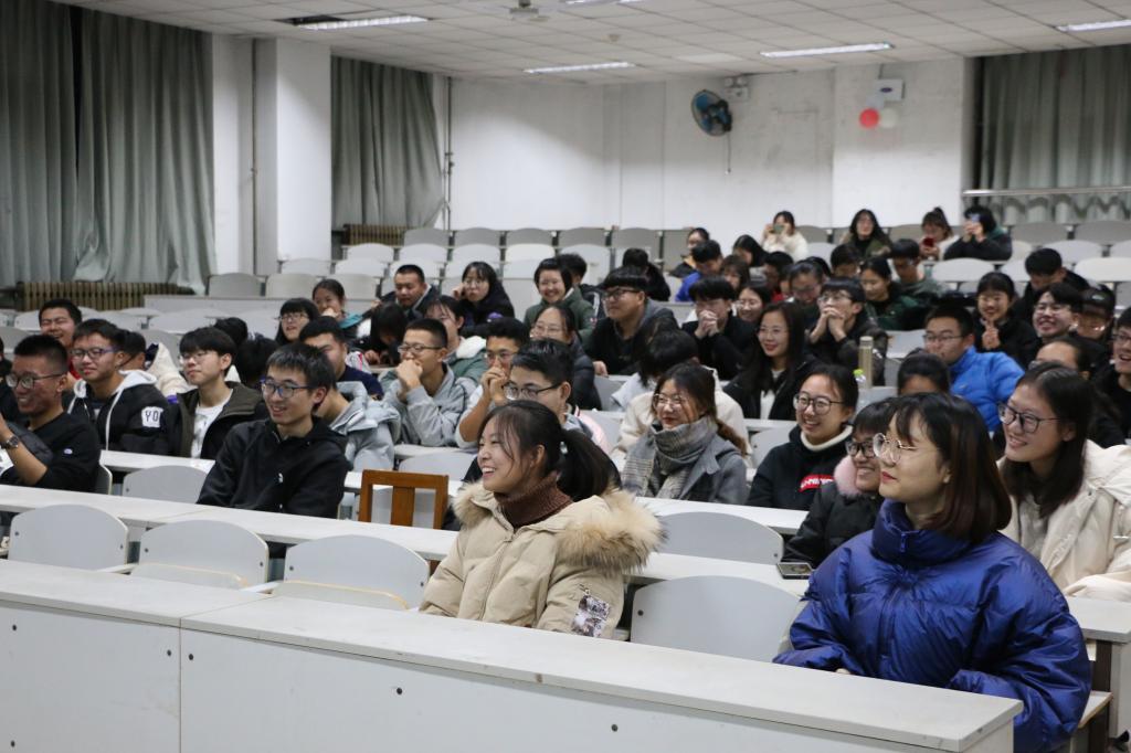 悠扬的音乐时刻牵动着陆续进场的同学们的心灵。本次讲座以幽默的话剧拉开帷幕,让同学们了解生活中的各种诈骗形式。信息安全部通过详细分析诈骗案例为同学们分享防骗秘籍,权益保障部为同学们普及基本权益与保障相关知识以及勤工助学相关信息,心理健康部通过分析常见的心理问题和人际交往等特点教同学们如何保持健康心态。同学们与主讲人积极互动,通过回答与讲座主题相关的问题获得各种小礼品,现场气氛高涨。
