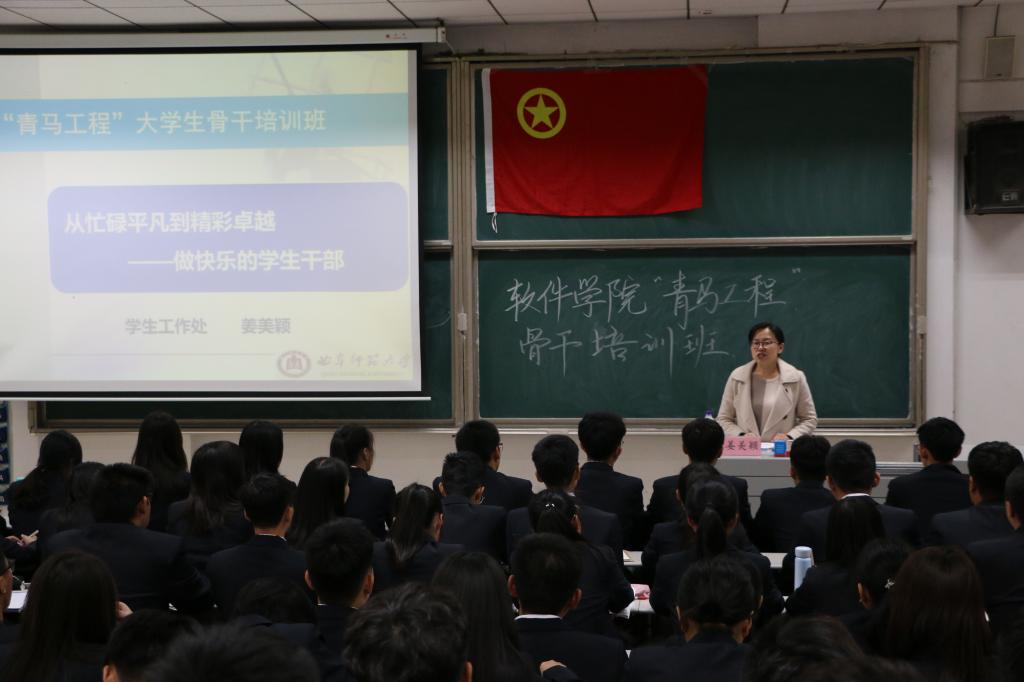 2019—2020学年“青马工程”大学生骨干培训班第二次课暨第29期团校于综合楼506教室成功开讲。学生工作处处长姜美颖老师应邀主讲,团委书记范瑞红老师主持。