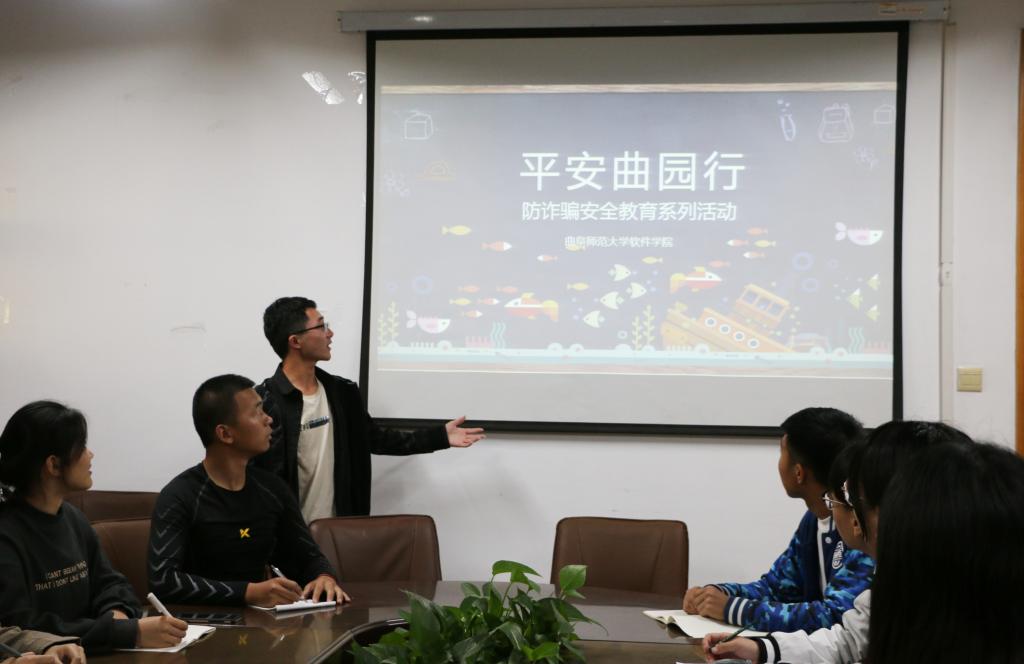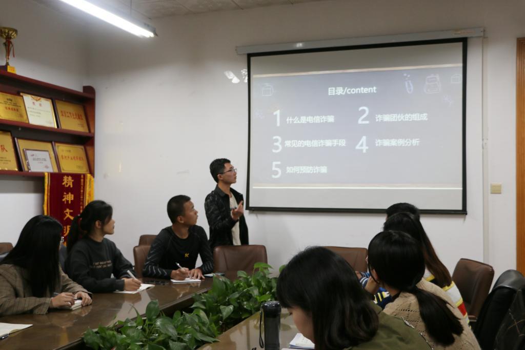 会议室举办了防诈骗安全教育宣传活动,2018级学生刘源担任本次活动主讲人。