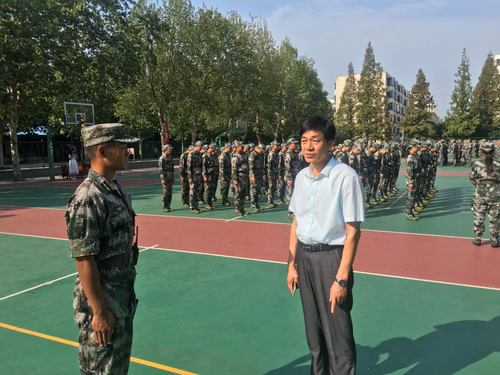 党委书记田云飞、团委书记范瑞红、辅导员郑凤华、单天罡到训练场地视察军训工作、慰问训练新生。