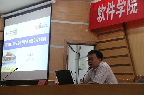 聘任仪式后,赵国亮做了有关“高可靠、高安全软件质量检测及相关案例”的讲座,详细阐述了软件测试对于产品、产业和行业的重要作用,对静态测试与动态测试做了细致地解释,展示了软件测试专业的未来发展方向和同学们的就业前景。软件工程专业作为当下全球的朝阳专业,在国家建设信息化社会的大背景下,具有巨大的发展空间。讲座内容丰富精彩,师生积极互动,现场气氛热烈。