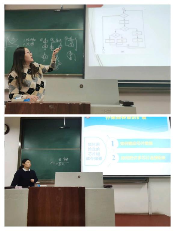 本次参加比赛的教师青年组有12名,普通组有3名。每位教师有10分钟的授课时间,在黑板和ppt上展示教学内容。教师们镇定从容、思路清晰,从教材、学生、教学方法及教学理念、教学过程等方面入手,全面地阐述讲课内容,为大家呈现了一个个亮点纷呈的片段课堂。最终李桂青获得青年组一等奖,王蓓获得普通组一等奖。比赛结束后,评委老师点评到:教学要与科研相结合,板书要与多媒体相结合。用知识点引导学生思考,提出问题,解决问题,最后再回到问题。还要注意教师教态,讲课时不仅要情绪饱满高涨,还要与学生有眼神交流。