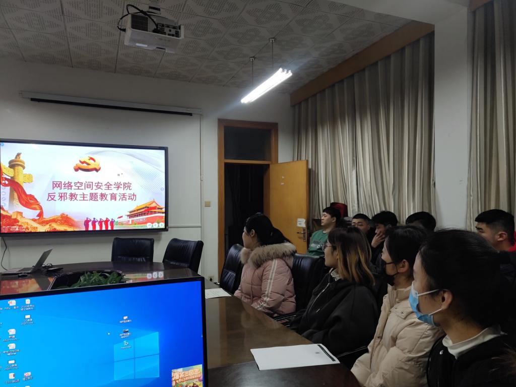 会议室开展反邪教主题教育活动,党支部全体党员参加。