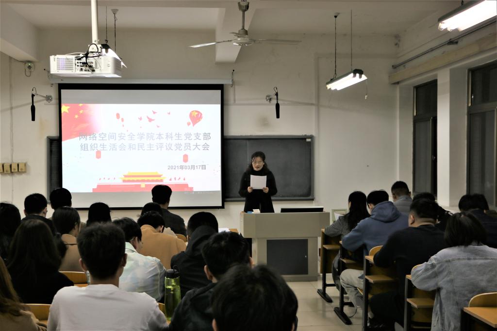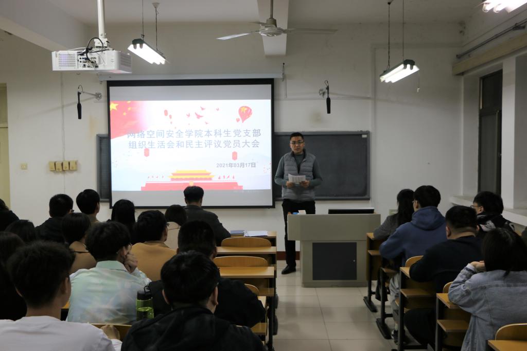 田凯代表本科生党支部向大会汇报一年来的支部党建工作,从政治建设、思想建设、组织建设、作风建设以及支部创新活动等方面进行了述职,查摆不足,并拿出切实可行的整改方案。