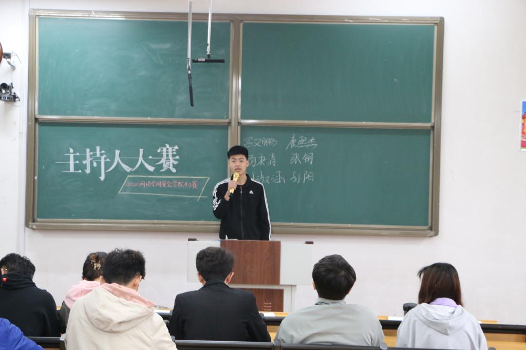在西联一教室举办主持人大赛初赛,本次比赛由辅导员丁允念以及文艺部成员参加并担任评委。