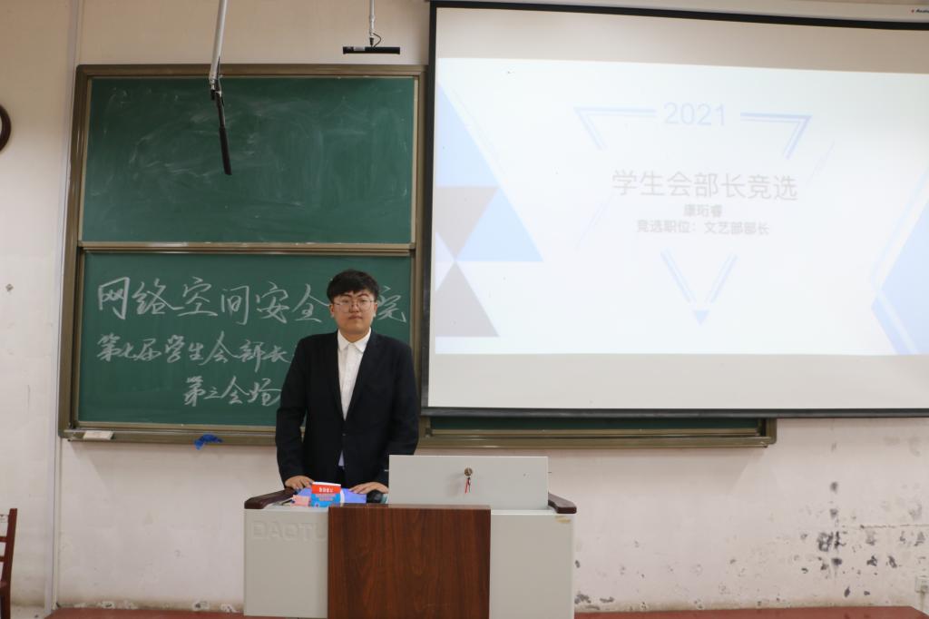 竞选者们着装整齐、仪容端庄、精神饱满,在候场室提前做好准备,他们按照顺序依次答辩,分别从自我介绍、工作经验、自身优势、工作设想等方面进行阐述,谈论了自己在学生会两年的工作经验,同时展示了自己的技能特长,充分展现了竞选者对提升自我、实现自身价值的渴望。精彩的演讲后,为考察选手的临场应变能力,评委向竞选者提出一系列问题,面对各种提问,竞选者沉着冷静,能够用自然流畅的语言做出回应,赢得了同学们的热烈掌声。