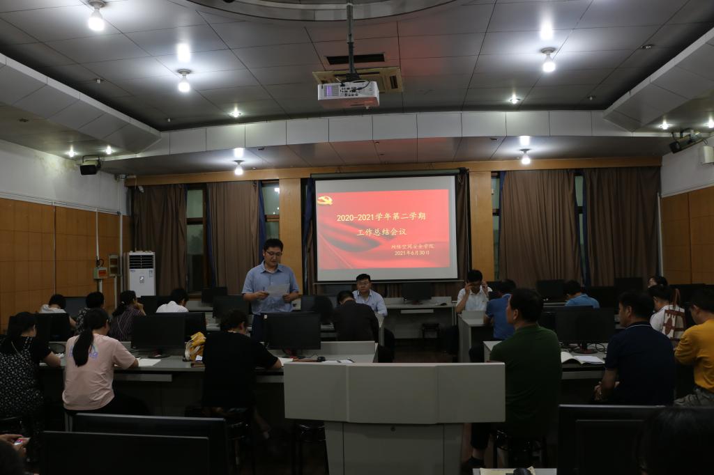 接下来,相关部门负责人就自己分管的工作进行了发言:党委副书记田凯总结本学期学生工作;副院长倪建成总结本学期教学工作;院长助理马旭总结本学期科研工作;教学秘书刘新安排部署考试相关工作;系主任臧小东、王玉德、李桂青依次汇报本学期各系部相关工作。