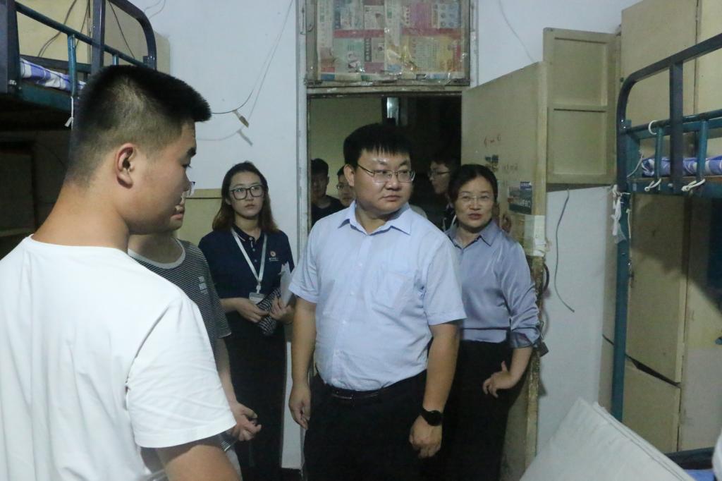 院长王茂励,党委副书记范瑞红,辅导员丁允念,李扬,于媚媛走访宿舍,关心慰问新生。
