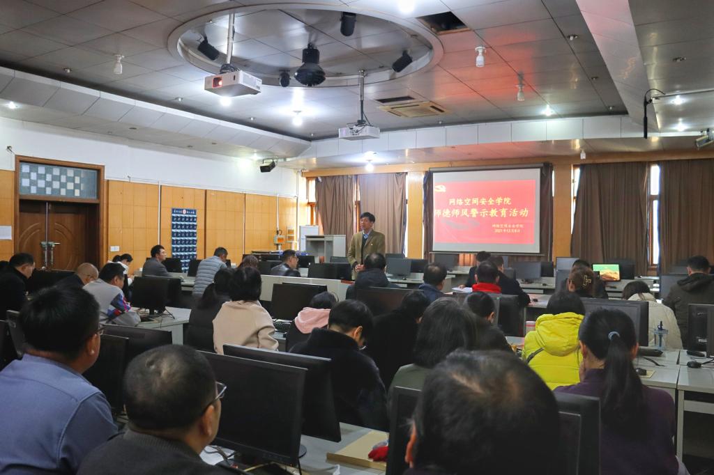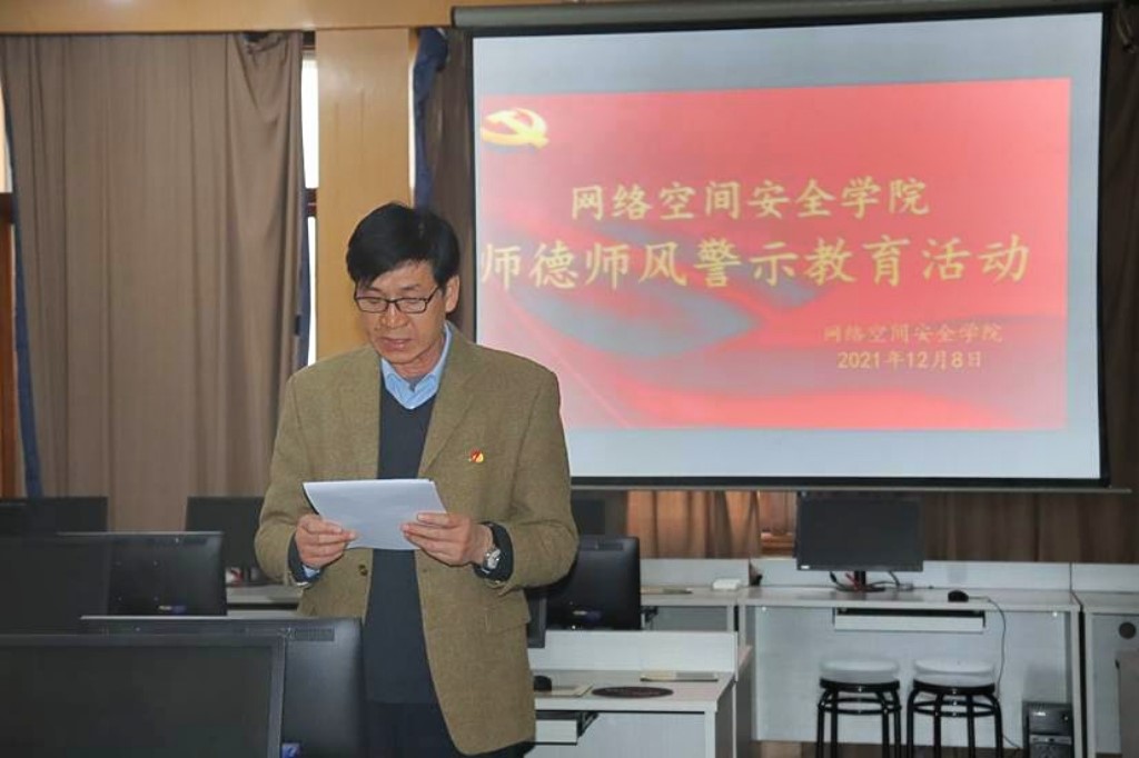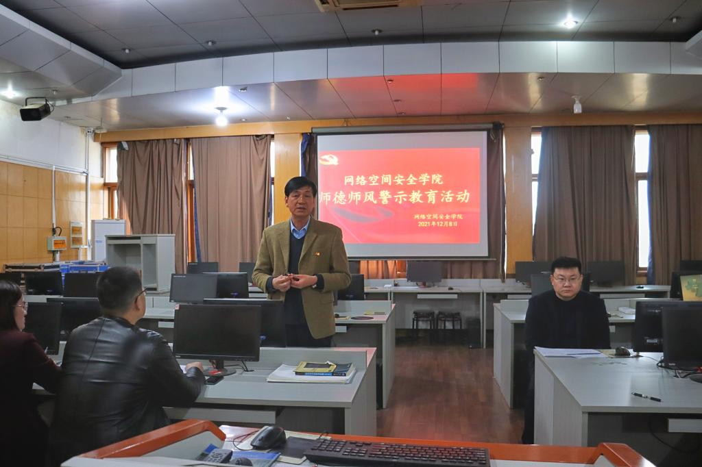 田云飞传达了学校《关于组织开展师德师风专题警示教育活动的通知》精神,带领大家认真学习了《教育部公开曝光第八批8起违反教师职业行为十项准则典型案例》,并对这些违纪行为产生的根源进行了深刻剖析。田云飞要求全体教师警钟长鸣,引以为戒,牢固树立师德底线,不断涵养高尚师德,坚持以德立身、以德立学、以德施教,坚守为党育人、为国育才的教育初心,做党和人民满意的“四有”好老师。