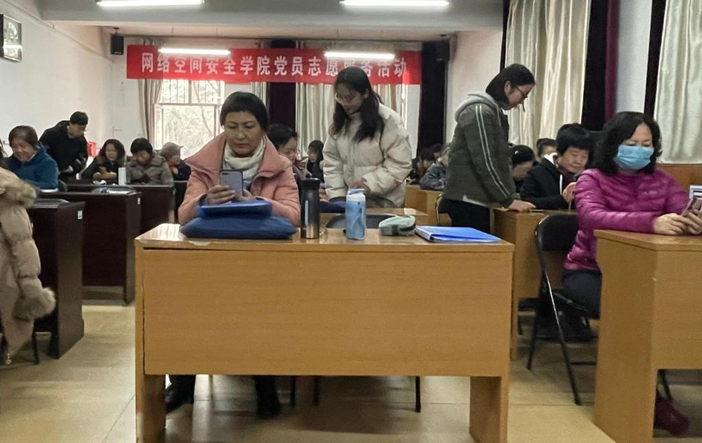 信息安全部“我为群众干实事”支部共建活动在老干部楼一楼会议室进行,信息安全部干事牛功飞为老干部们讲解网络诈骗知识。