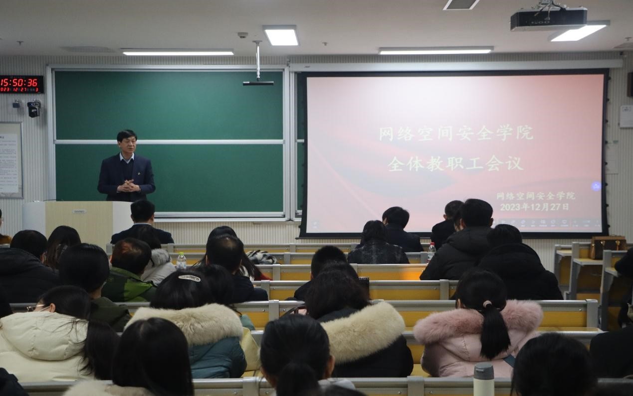 于格物楼221召开全体教职工会议。党委书记田云飞、院长王茂励、副书记范瑞红、副院长马旭及全体教职工参加会议。党委书记田云飞主持会议。