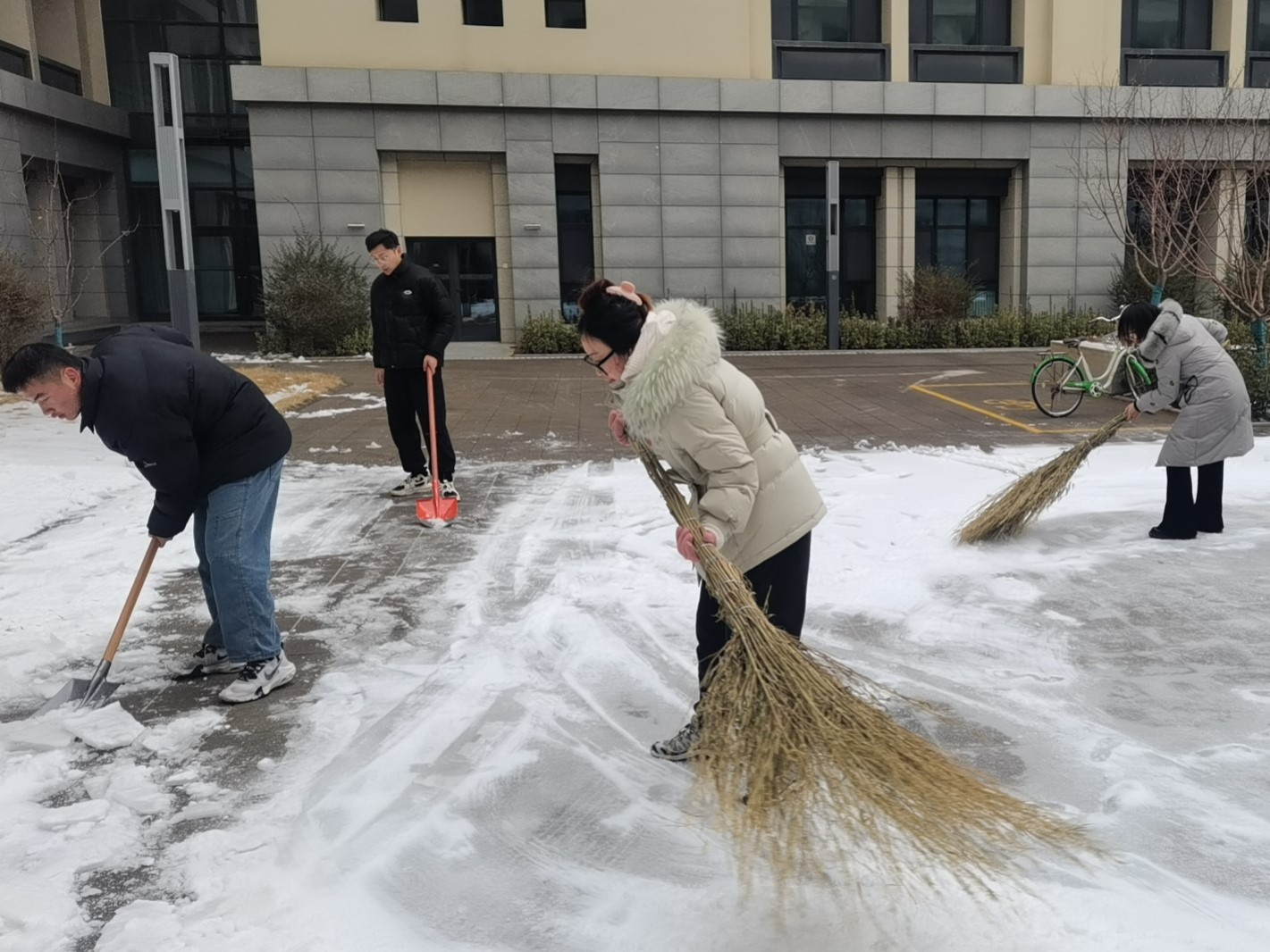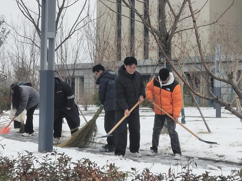 部分同学参与扫雪。