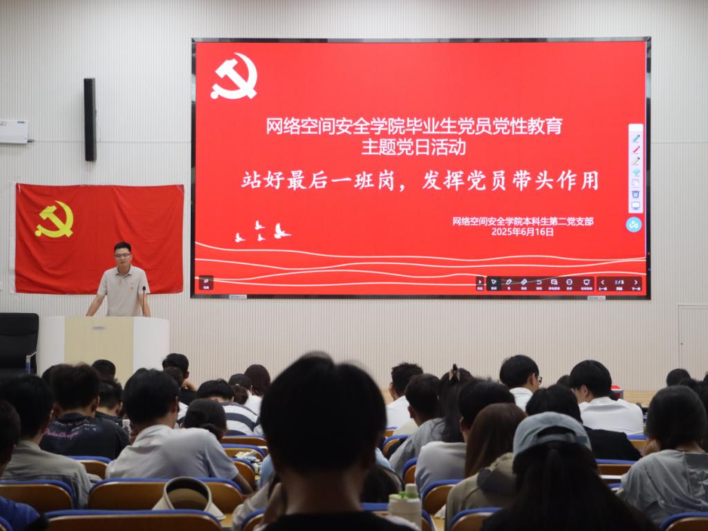 活动伊始,范瑞红着重强调党内组织生活纪律,要求毕业生党员无论何时何地,都要坚守原则底线,保持对党内生活的热忱,持续加强自身党性修养。武玉龙聚焦毕业生党员成长,提出殷切期望。他强调,毕业生党员要始终牢记党员身份,将在校期间锤炼的党性修养转化为服务社会的实际行动,以实际行动践行初心使命。丁允念聚焦毕业收尾工作实务,针对档案整理、宿舍清理、学位服回收等事项,细致叮嘱毕业生党员,要求大家以严谨认真的态度站好在校最后一班岗,为大学生活画上圆满句号。