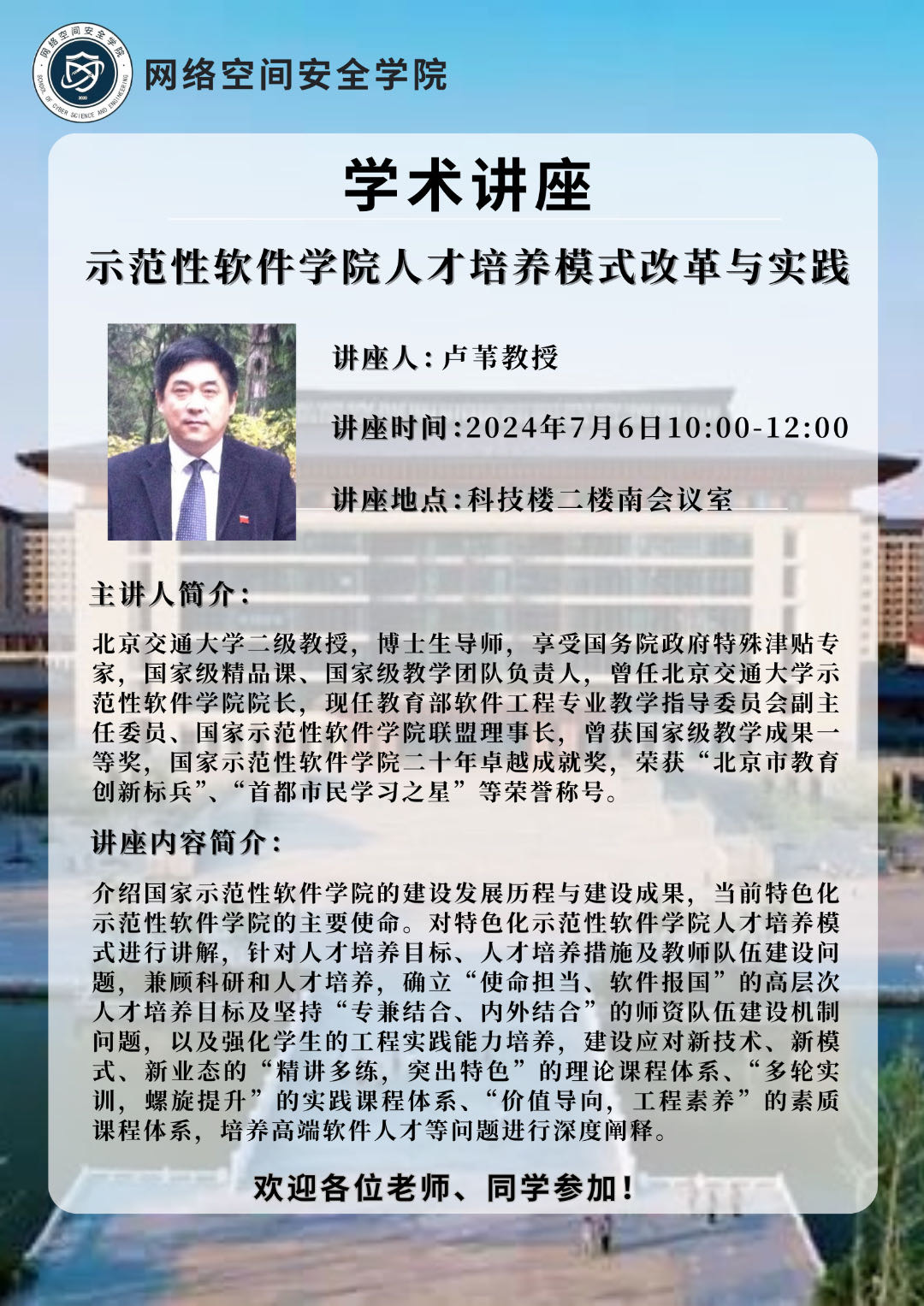 讲座通知:示范性软件bet365 人才培养模式改革与实践