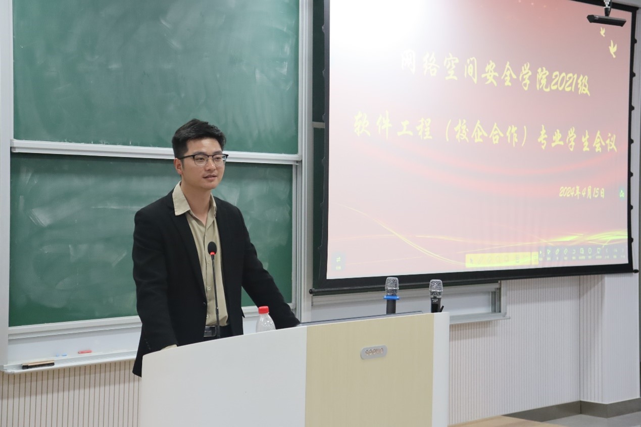 团委副书记丁允念主持会议,2021级软件工程(校企合作)专业全体同学参加。