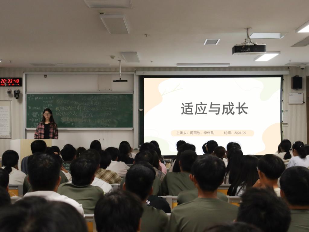 心理健康部组织开展,2025级全体学生参加,心理健康部干事周雨欣、李伟凡担任主讲人。