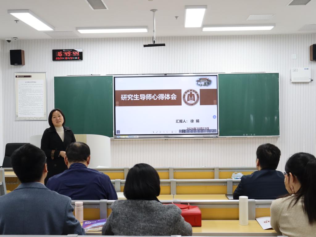 徐娟老师结合自己的指导实践,分享了对研究生导师的心得体会,强调了导师在研究生培养中的重要作用和责任。她从研究生导师业务能力提升出发,分享了自身研究生培养和团队建设的经验,并给出如何培养研究生的建议;同时从关注研究生心理健康出发,分析了当前研究生心理健康现状,分享了如何改善研究生心理状况的具体方法。