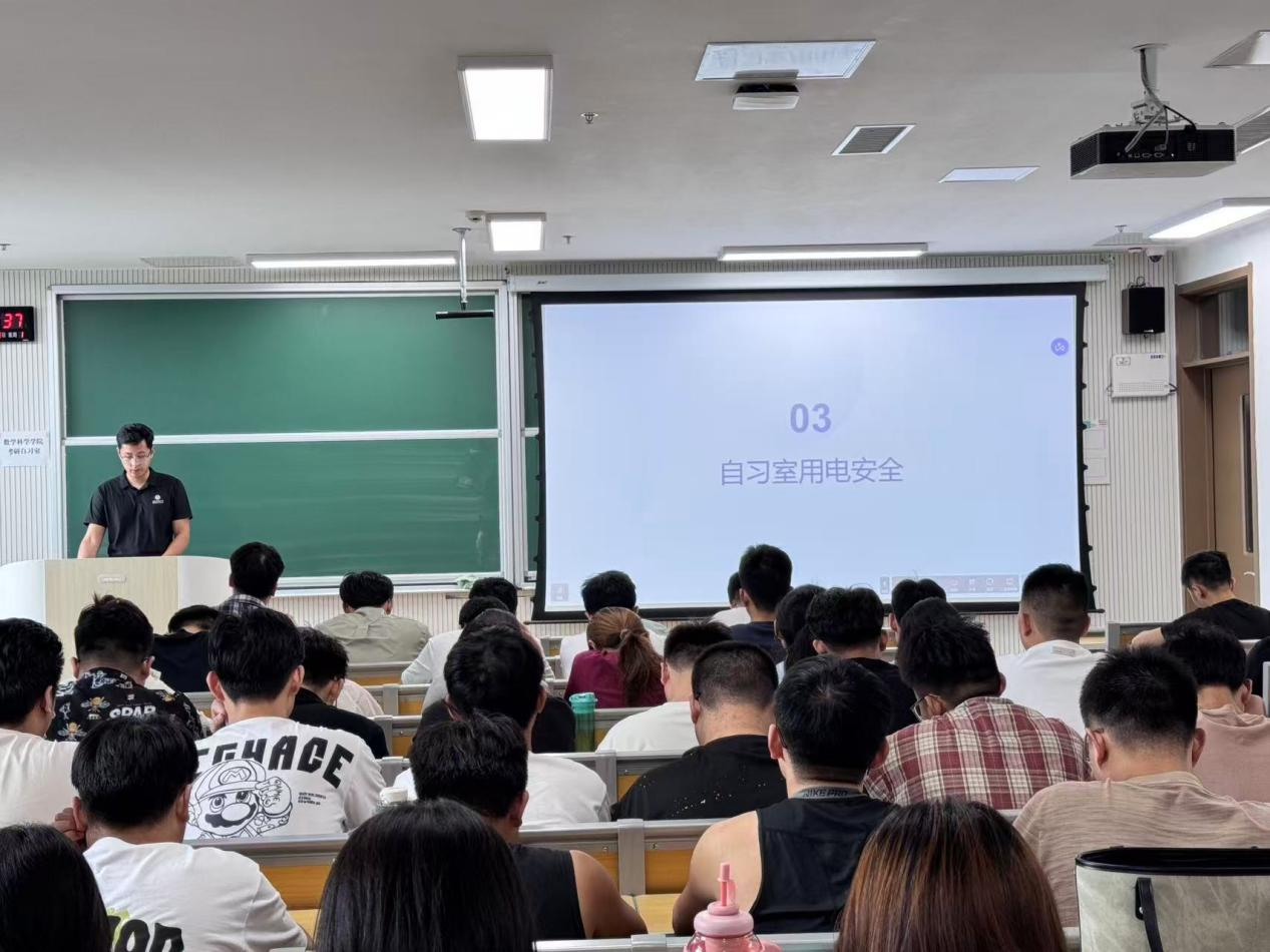 赵老师围绕宿舍安全、自习室用电安全、交通安全、网络安全等多个安全主题展开详细讲解。他结合具体案例,引导同学们树立正确的安全观念,掌握必要的安全知识和应急处理技能。赵老师指出,安全是开展一切科研与学习活动的基础,研究生作为科研创新的重要力量,更应将安全意识内化于心、外化于行。