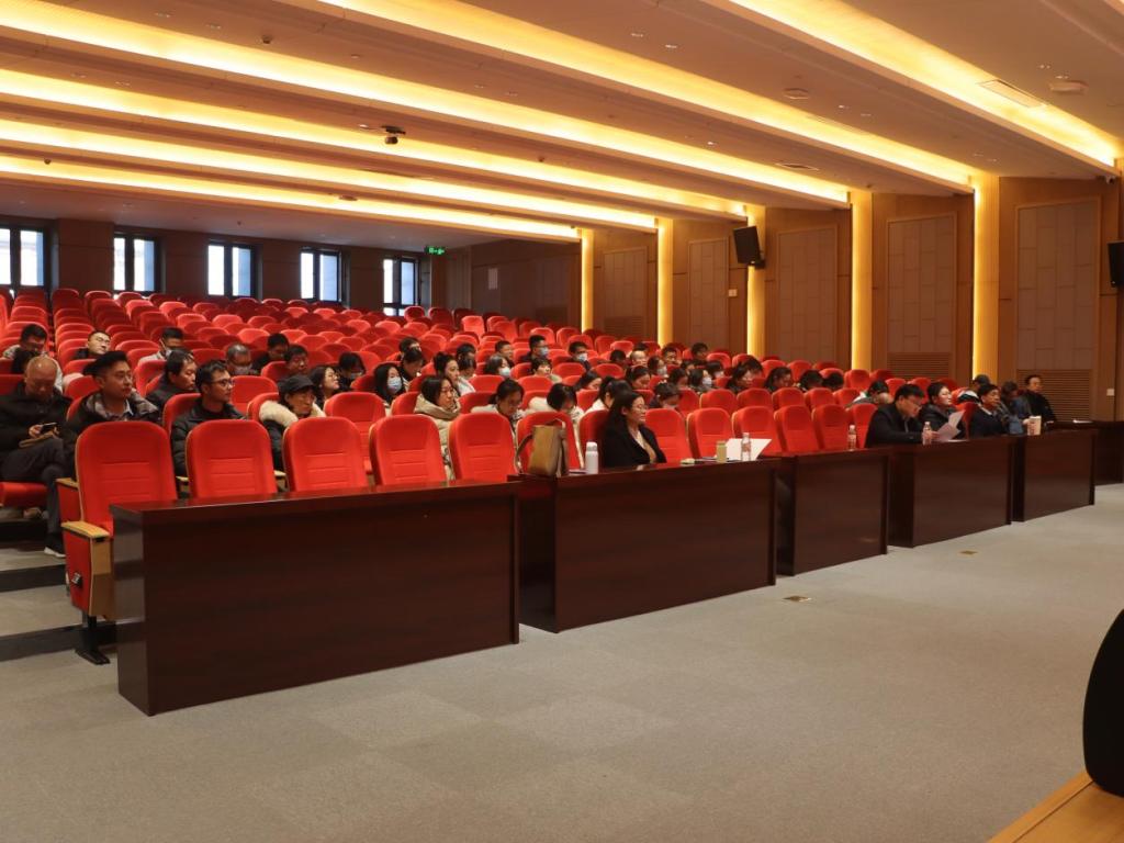 全体教职工参加会议,会议由党委书记田云飞主持。