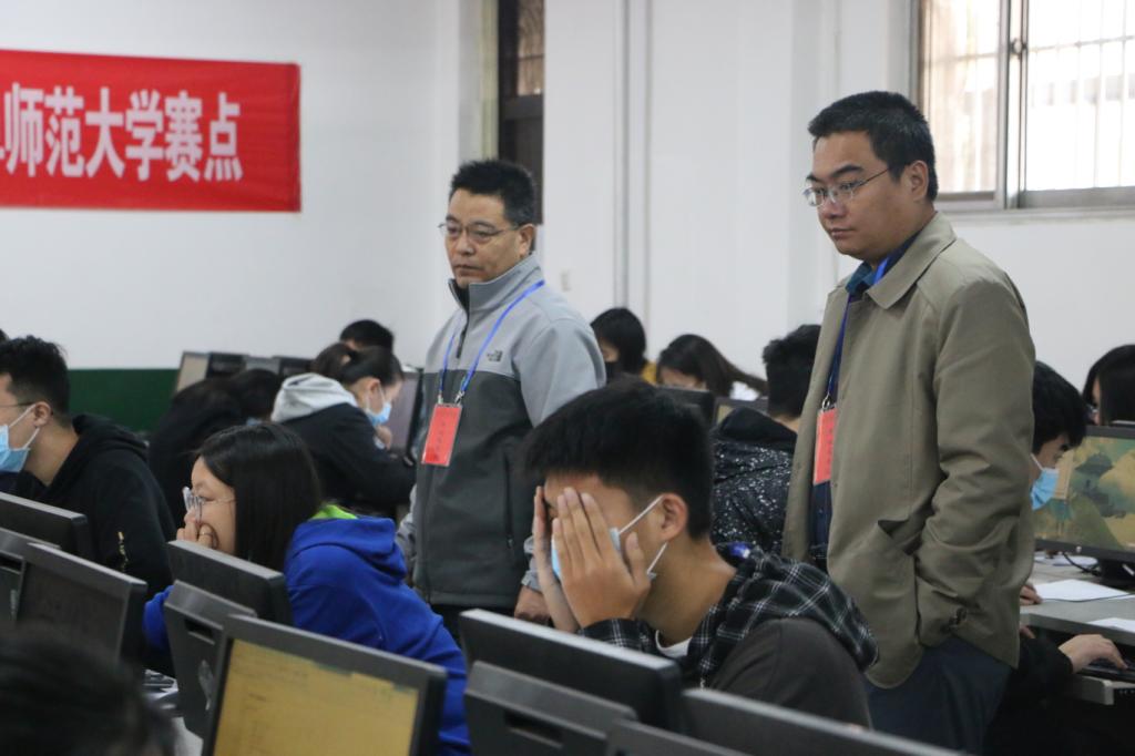 从上午九点开始,比赛历时4个小时。100多名参赛选手以一尺键盘为赛场,以敲出一符符跃动的代码为利器,以生成一道道鲜活的指令为战戟,针对自己的编程方向,熟练的使用相应的编译器。一行行代码不断地显示在电脑屏幕上,神思敏捷的同学们大脑飞速运转,成功运行代码,解决了一个又一个编程问题。整场比赛激烈而有序,监考小组对考场进行严格监考,确保比赛顺利进行,保证比赛的公平公正。