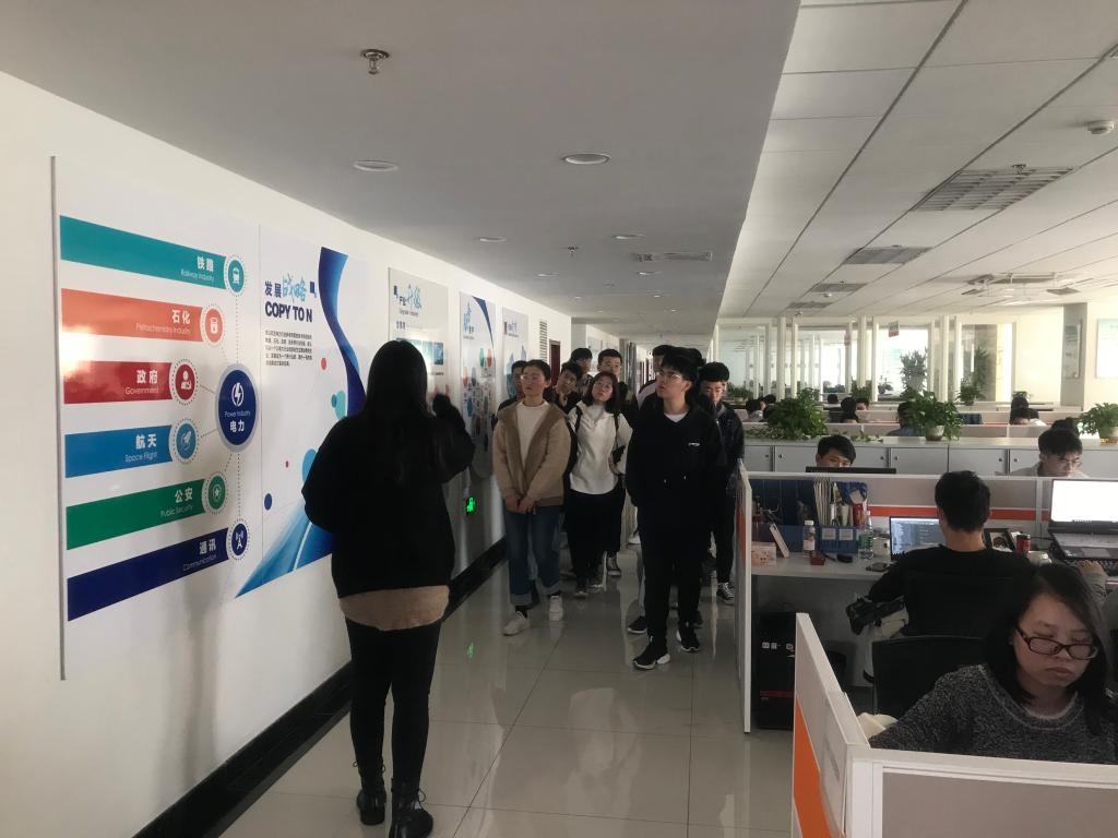 同学们分成两队,移动互联班来到金现代信息产业股份有限公司,智能数据班开到讯和创新科技(北京)有限公司。两家公司的HR带领同学们参观了公司,首先讲解了公司的信息简介,随后介绍了公司的精神文化,使命,奋斗目标等。最后在公司的会议室HR用PPT的形式再次给我们展示了企业的规模、文化和发展方向等相关信息,接着召开了与大学生深入学习的座谈会,并为同学对未来考研就业问题进行了解答。