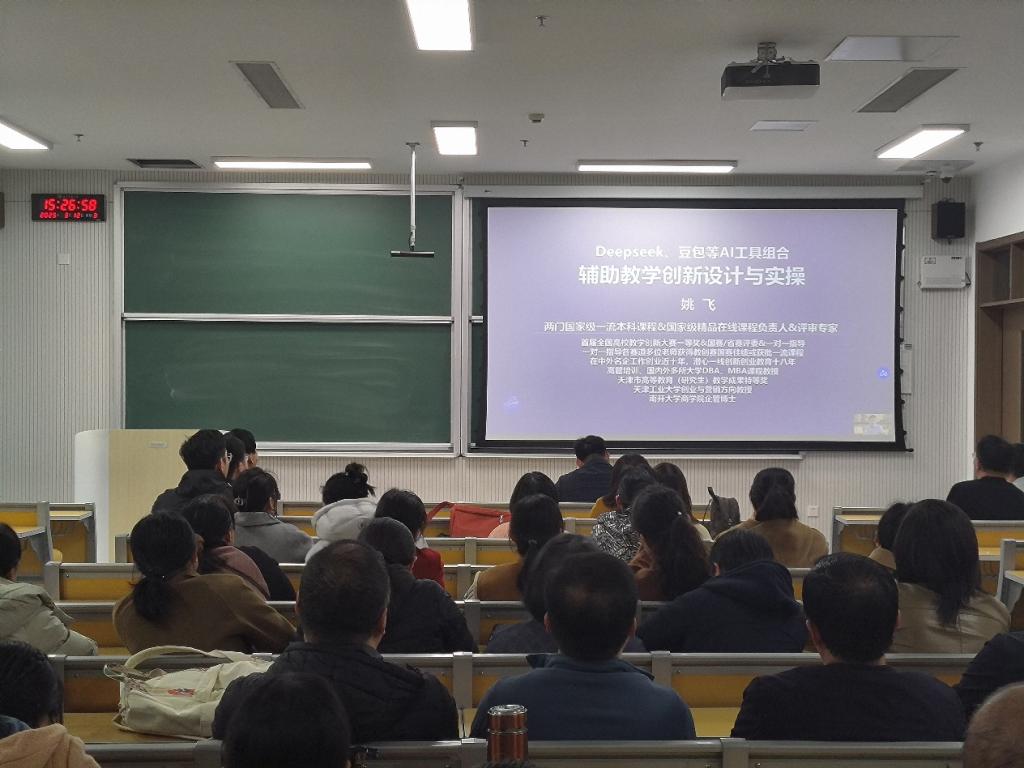bet365 院讯(通讯员:相青 张荣宇  摄影:贾宇凡)为在新时代数字化浪潮下构建高质量教育体系,为建设教育强国注入新动能,3月12日15:00,bet365 教职工AI工具辅助教学集体学习活动于格物楼B107开展。bet365 党委书记田云飞、院长王茂励、党委副书记范瑞红,副院长马旭以及全体教职工出席会议。会议由田云飞主持。